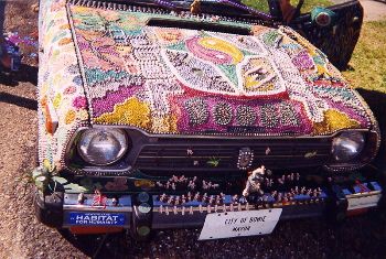 Featured is a photo of a cool art car ... cartist and photographer unknown.